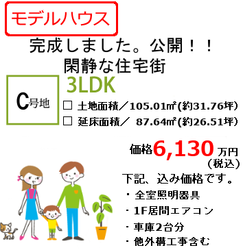 全室照明器具・1F居間エアコン・車庫2台分他外構工事含む